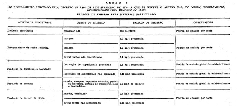 Os padrões de emissão constantes do Anexo 8, vigorarão