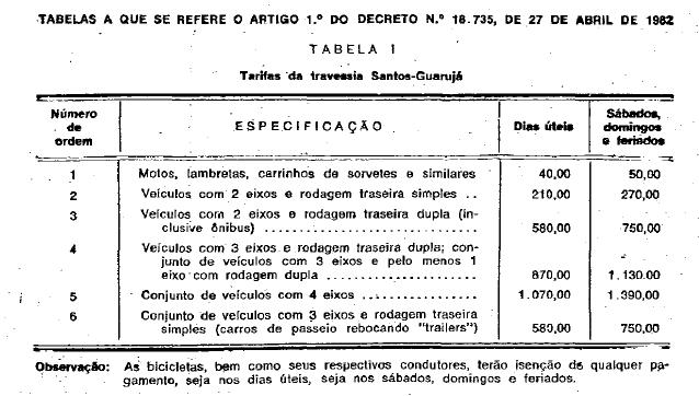 integrante deste decreto, as tarifas para os serviços de