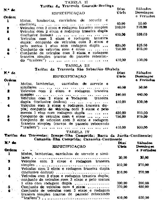 Sebastião-Ilhabela; Iguape-Ilha Comprida; Iguape-Juréia;