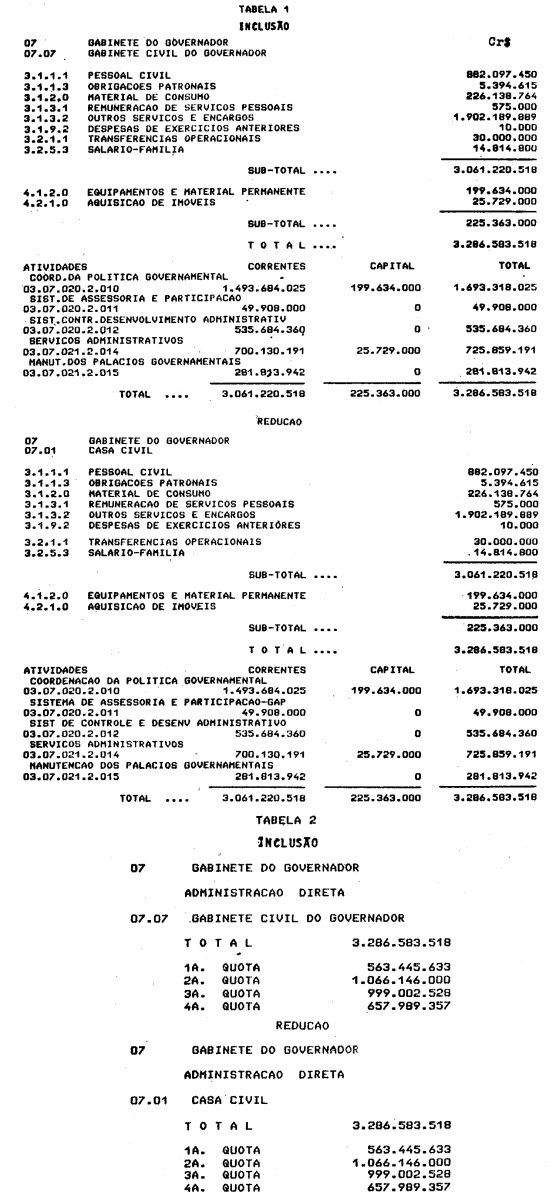 Orçamentária da Despesa do Estado, estabelecida pelo
