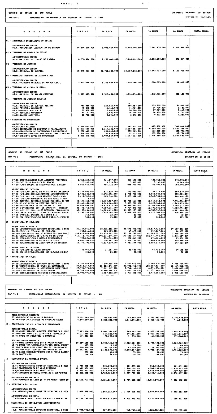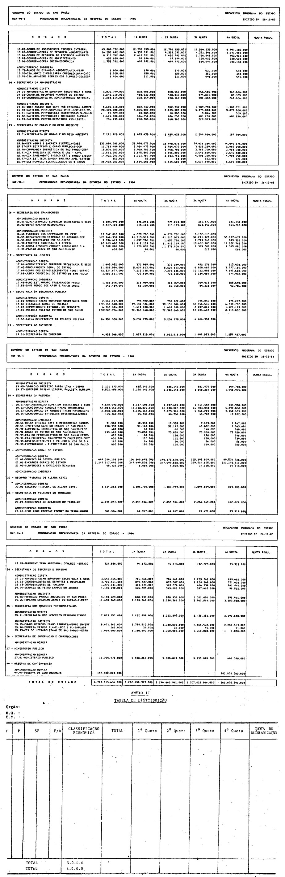 Artigo 1.º - O processo de execução do Orçamento-Programa Anual do Estado de São Paulo, aprovado pela Lei n. 3.941, de 06 de dezembro de 1983, observará as normas deste decreto utilizando os seguintes instrumentos: