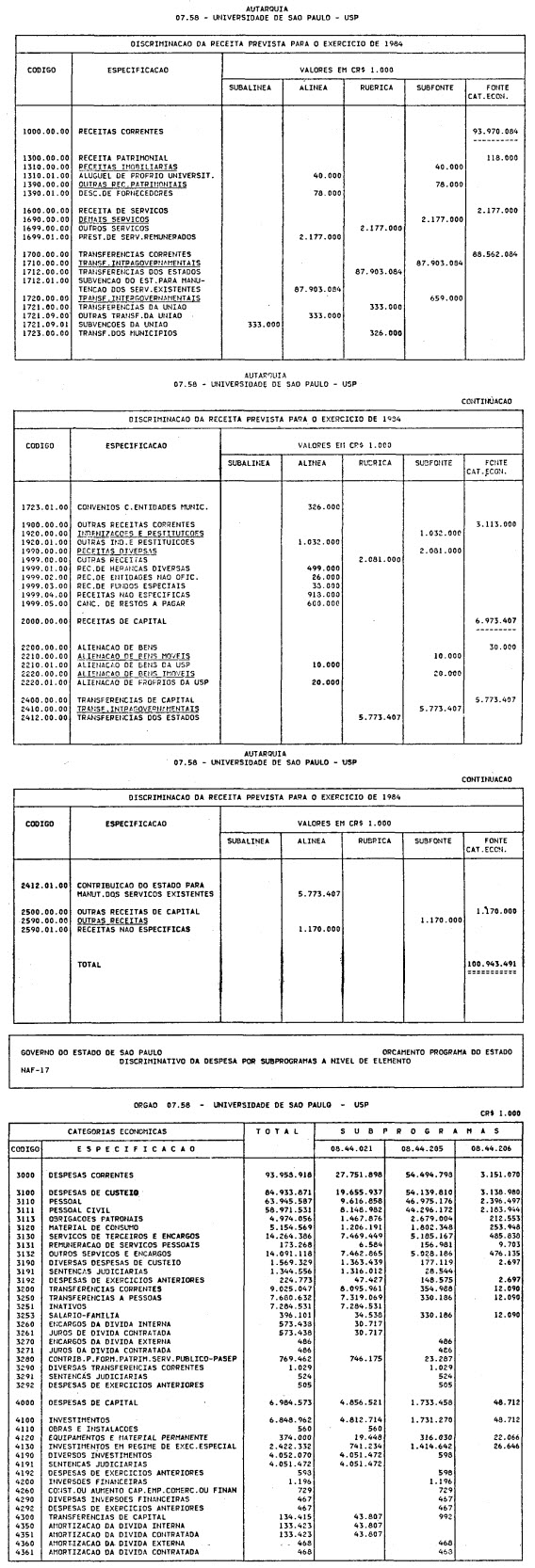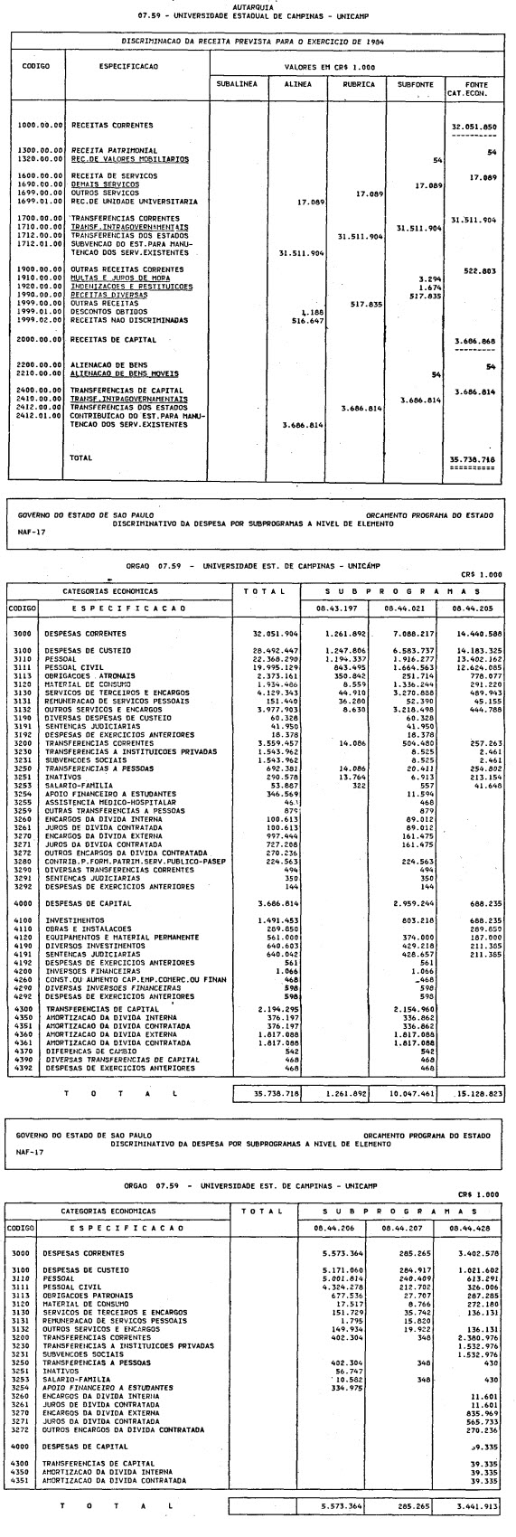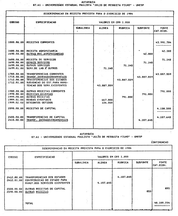 Mesquita Filho'' - UNESP, para o exercício de 1984