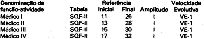 Médico I, II ou III, fixadas a Tabela, as referências