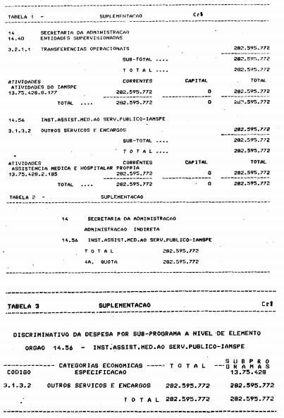 IAMSPE, mediante a suplementação de Cr$ 282.595.772