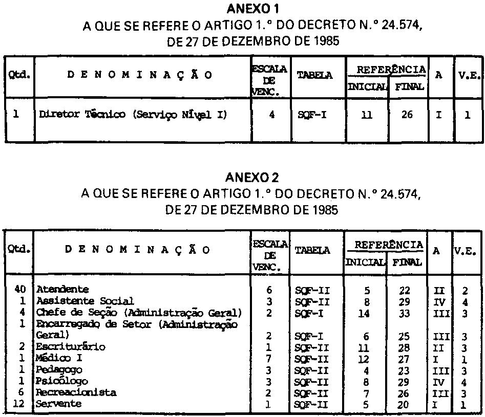 DECRETO N. 24.574, DE 27 DE DEZEMBRO DE 1985