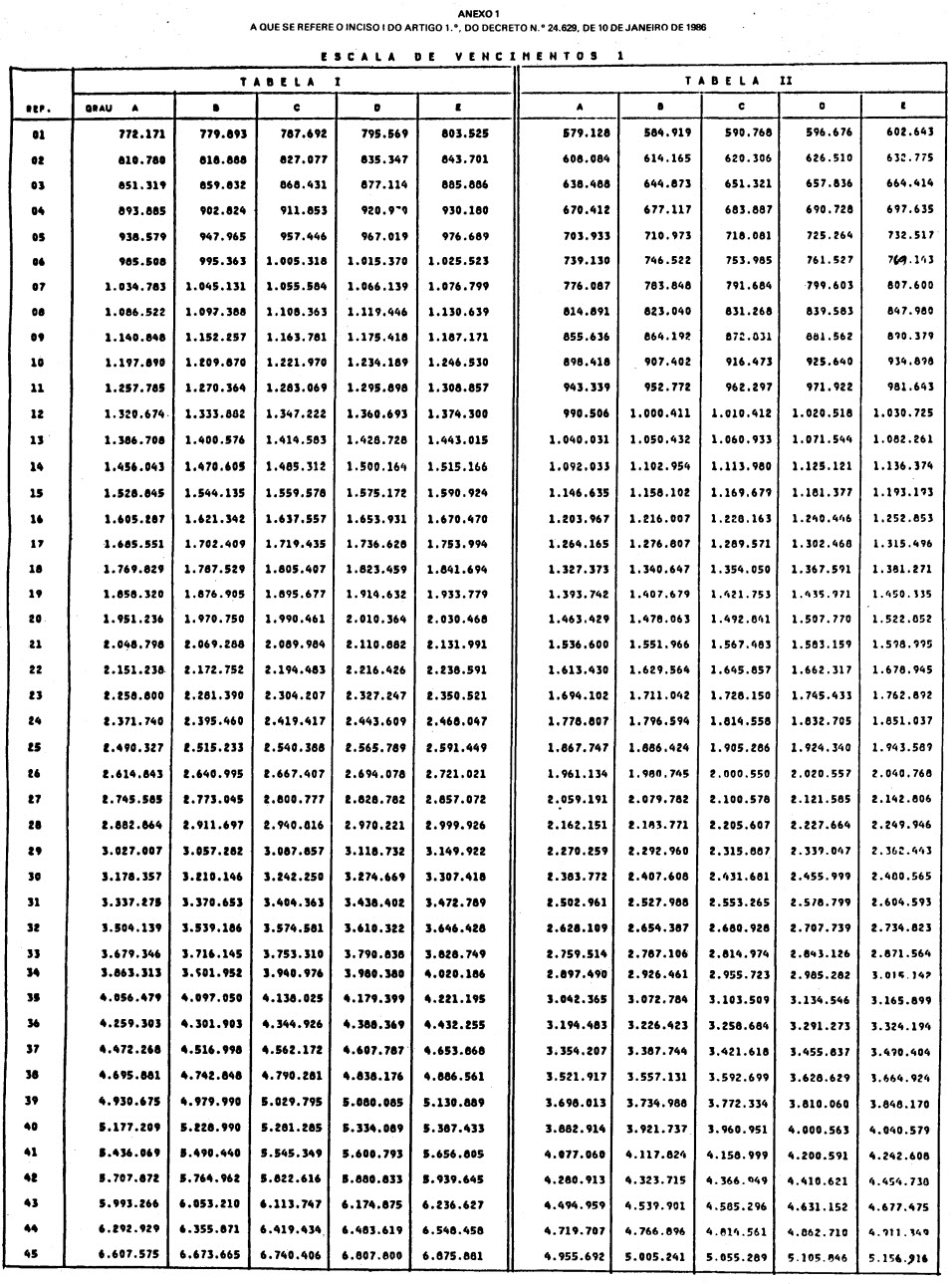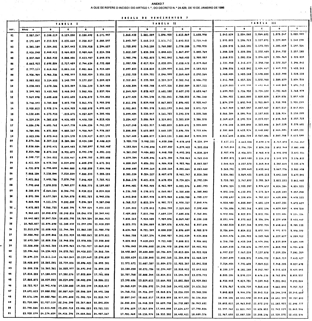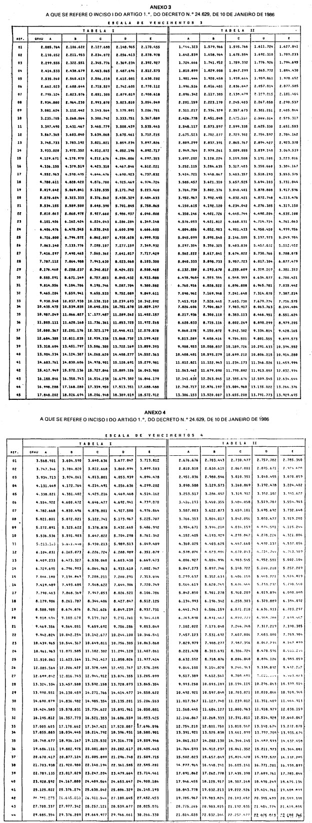 I - Anexos 1 a 7, relativos às Escalas de Vencimentos 1 a 7 de