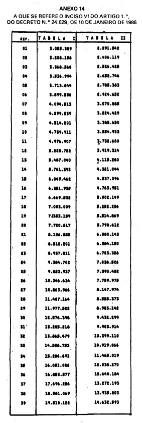 Decreto-lei Complementar n. 11, de 2 de março de 1970, reajustadas