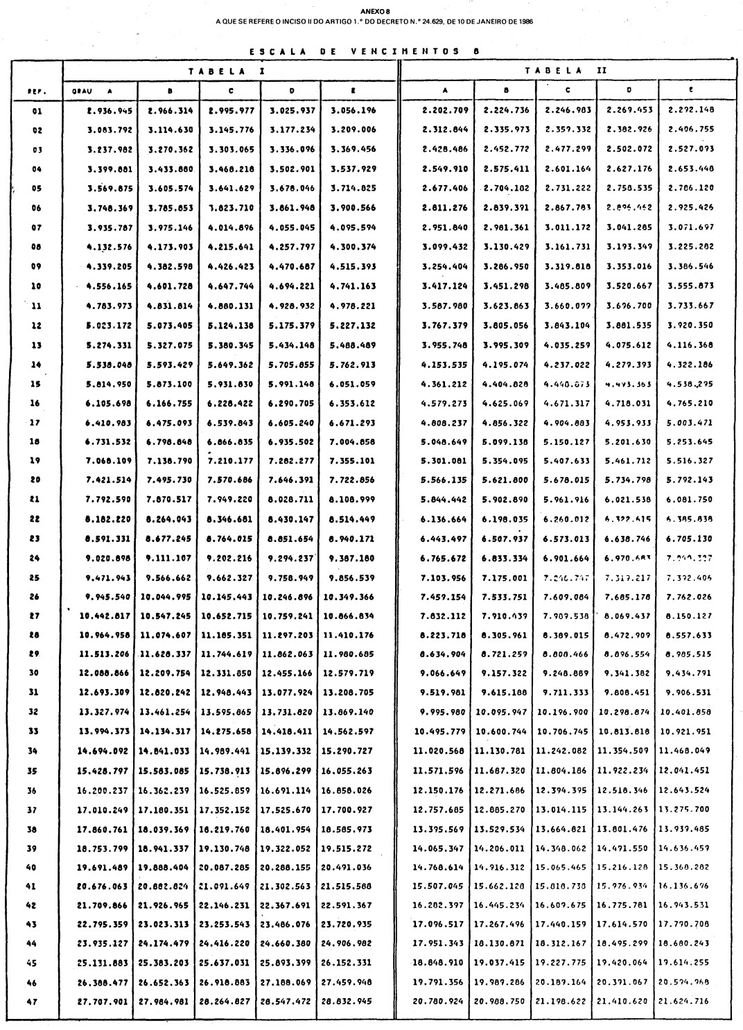 IV - Anexos 10 e 11, relativos às Escalas de Vencimentos