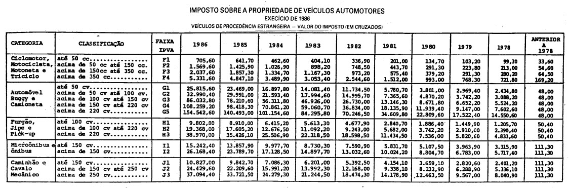 1986, ser levado em conta o valor constante do documento relativo ao