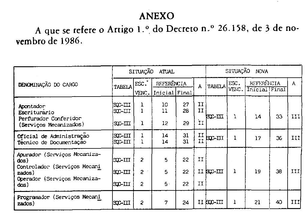 DECRETO N. 26.158, DE 3 DE NOVEMBRO DE 1986
