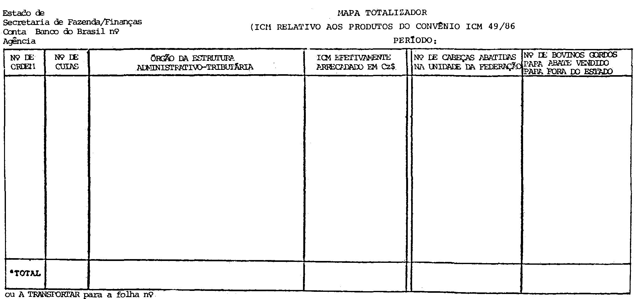 totalizadores do ICM arrecadado, conforme modelo anexo, tendo como base