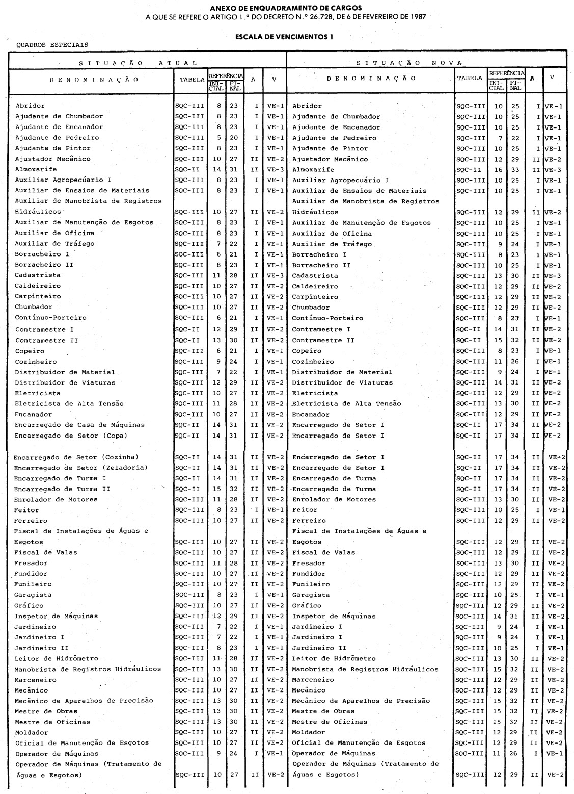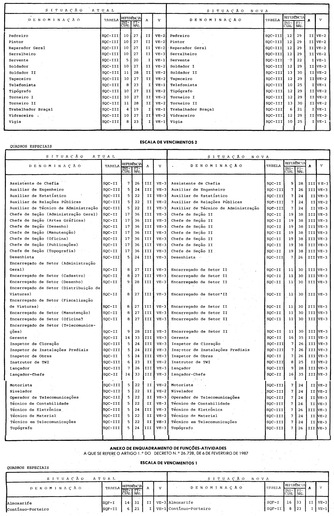 de Cargos e de Funções-Atividades correspondentes às Escalas de Vencimentos 1 e