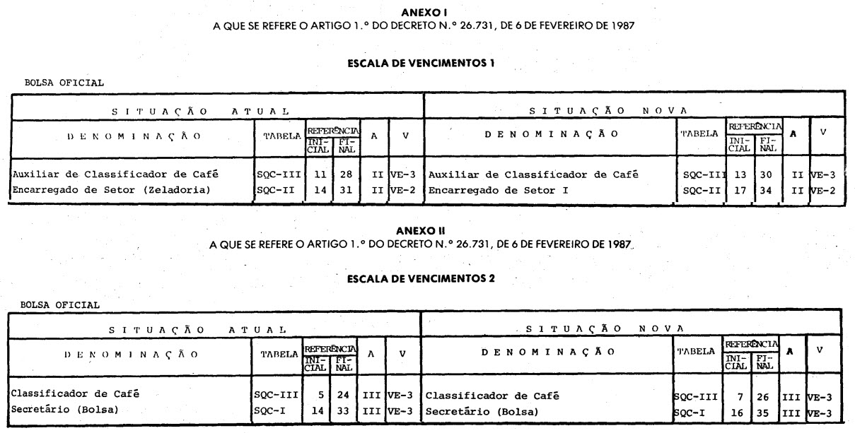 Escalas de Vencimentos 1 e 2, da Bolsa Oficial de Café e