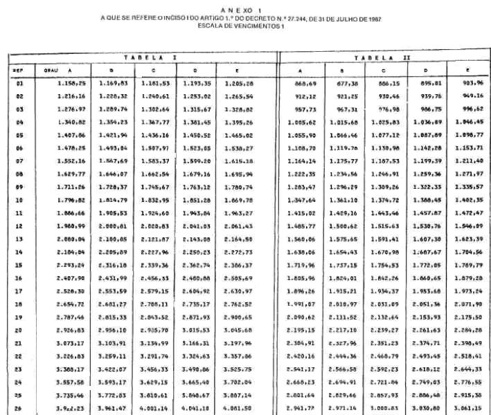 I - para os integrantes das classes correspondentes a Escala de Vencimentos 1: