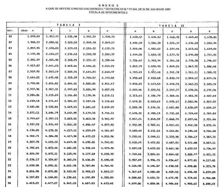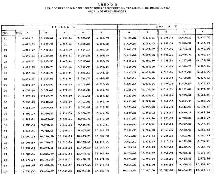 II - Anexo 8, relativo à Escala de Vencimentos 8 a que se