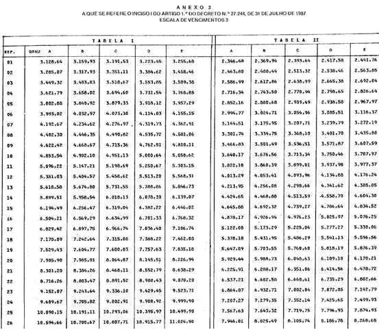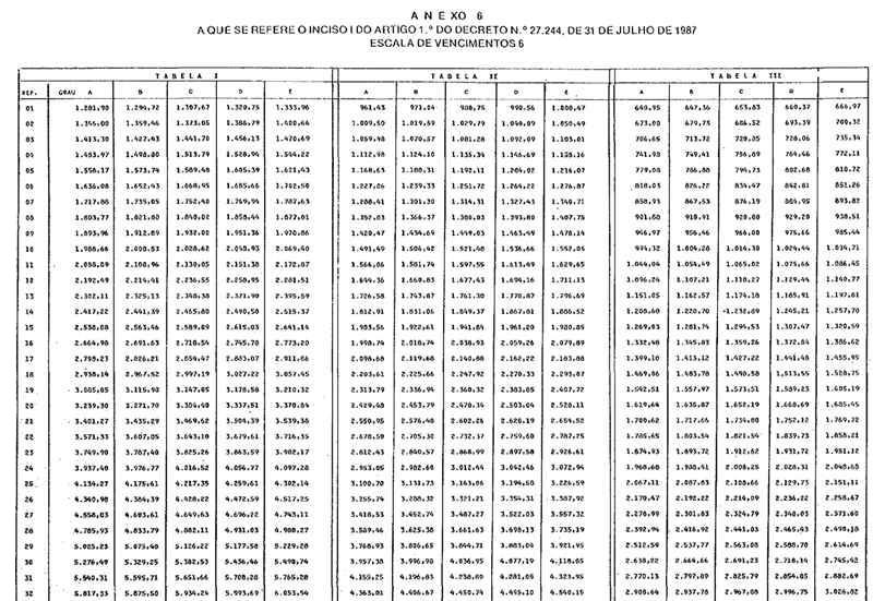 I - Anexos 1 a 7, relativos às Escalas de Vencimentos 1 a 7 de