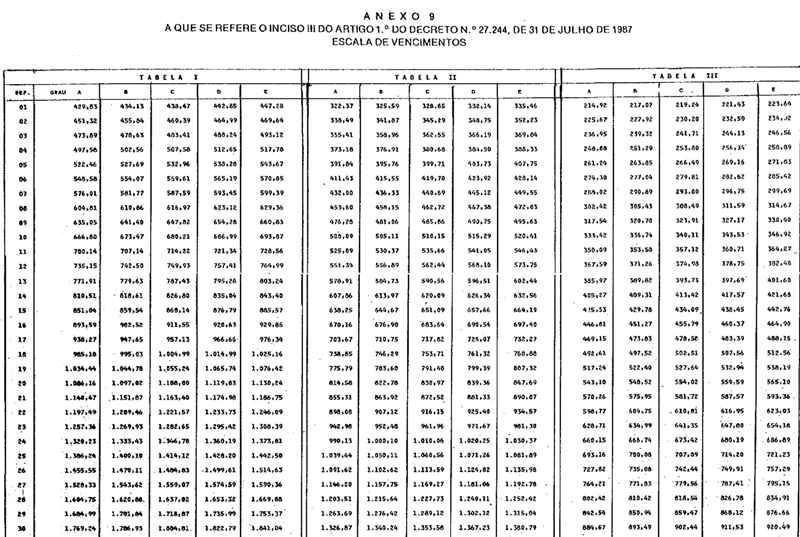III - Anexo 9, relativo à Escala de Vencimentos aplicável