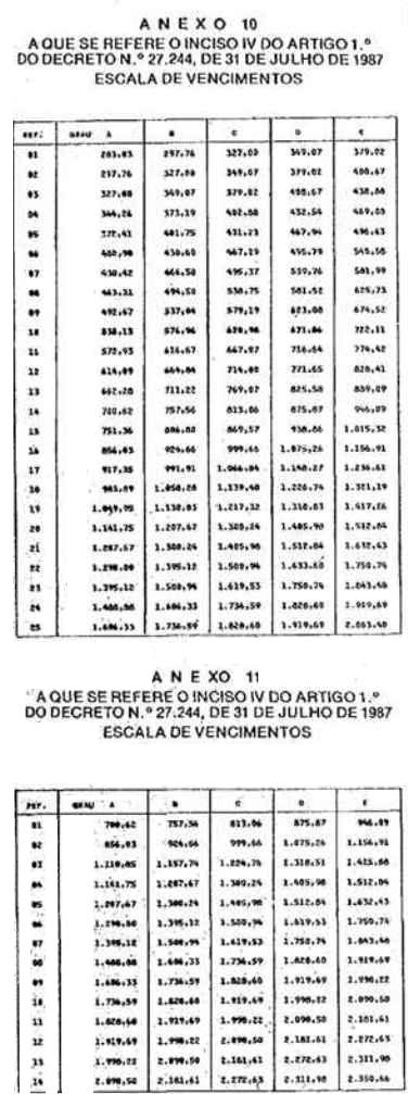 IV - Anexos 10 e 11, relativos às Escalas de Vencimentos
