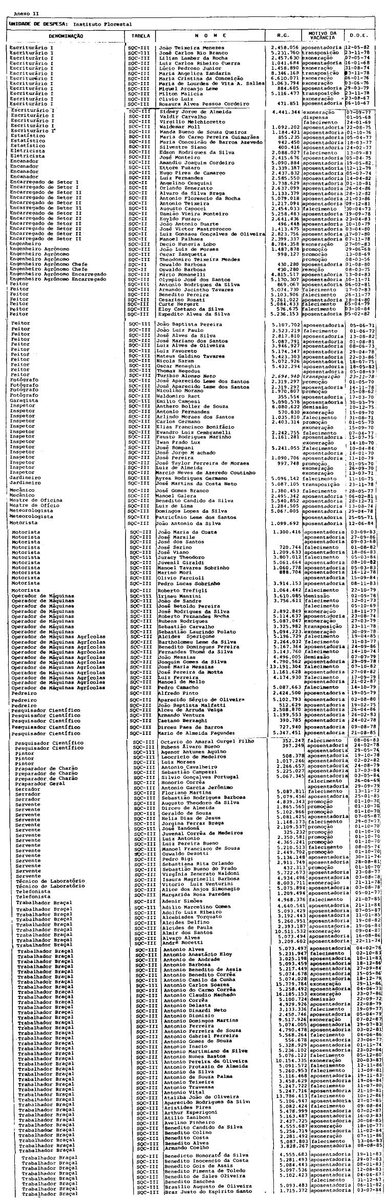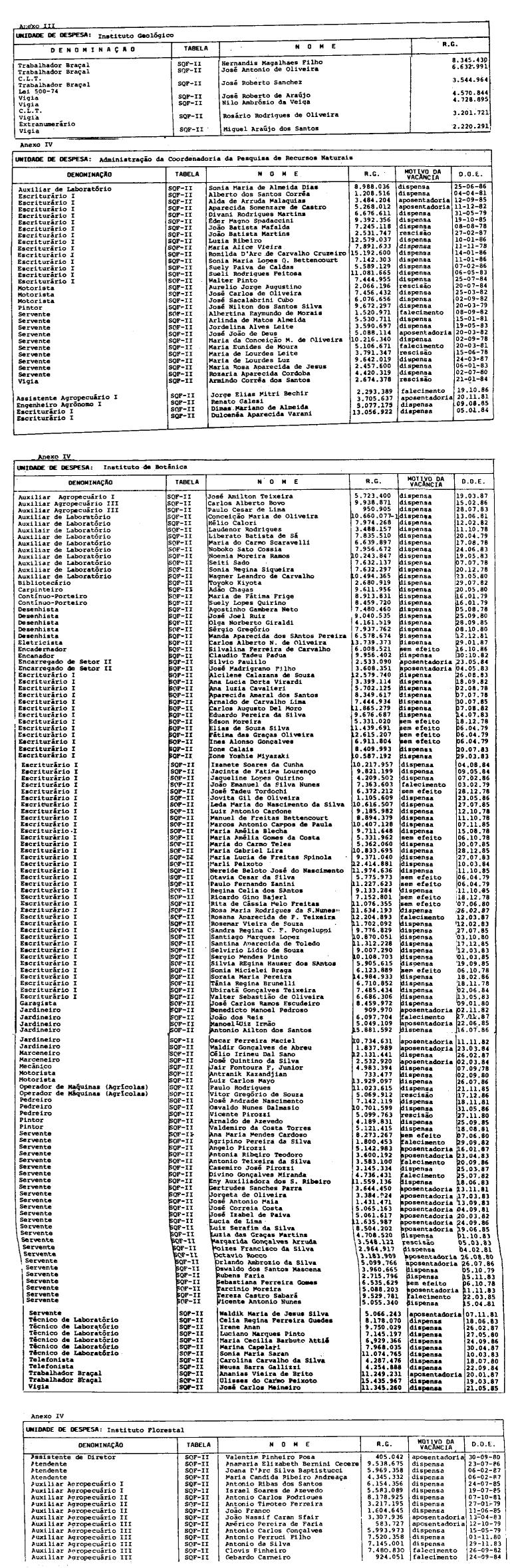 do Quadro da Secretaria da Agricultura para o Quadro da Secretaria do
