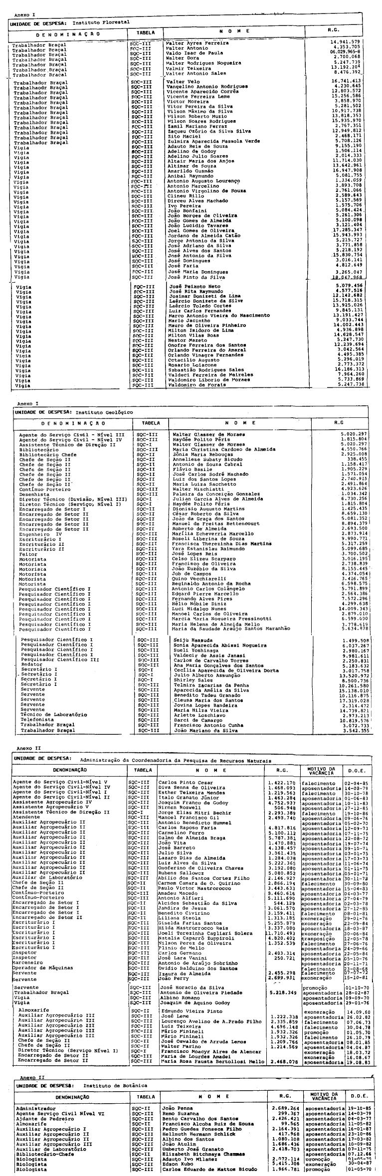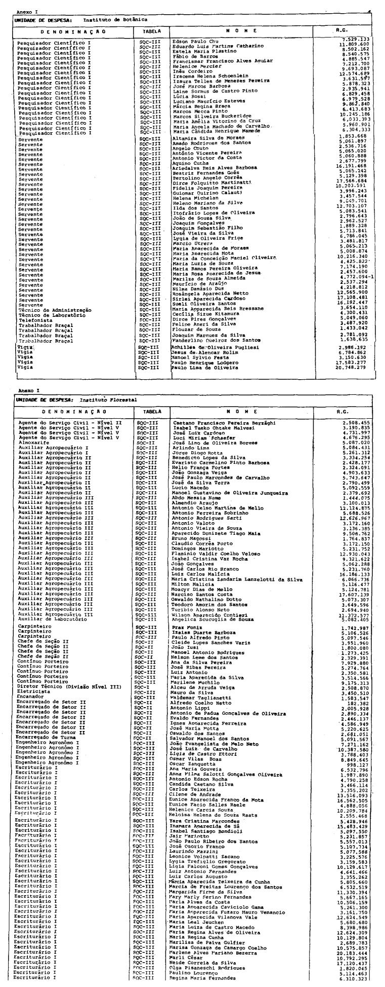 Ambiente, os cargos providos constantes do Anexo I e os cargos vagos