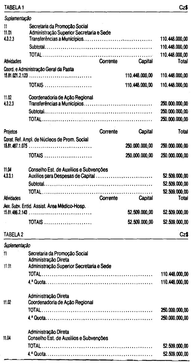 crédito suplementar ao orçamento da Secretaria da