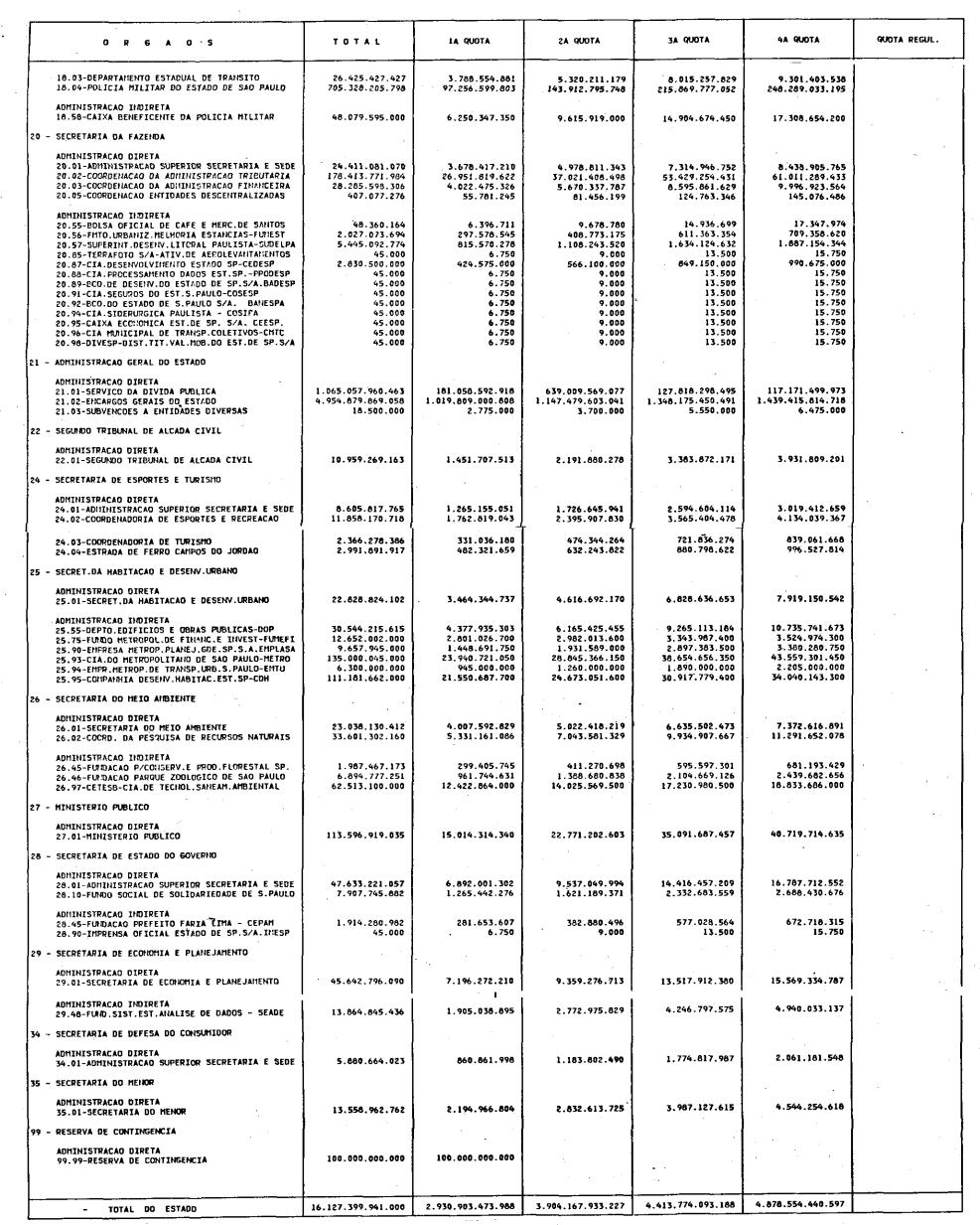 Artigo 5.º - Obedecido o montante das quotas trimestrais de cada Órgão e