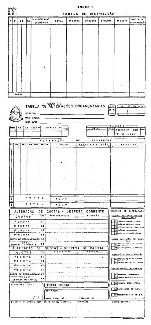 "Tabela de Alterações Orçamentárias" (Anexo III), pelos Secretários