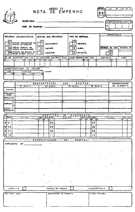 V - Nota de Empenho.