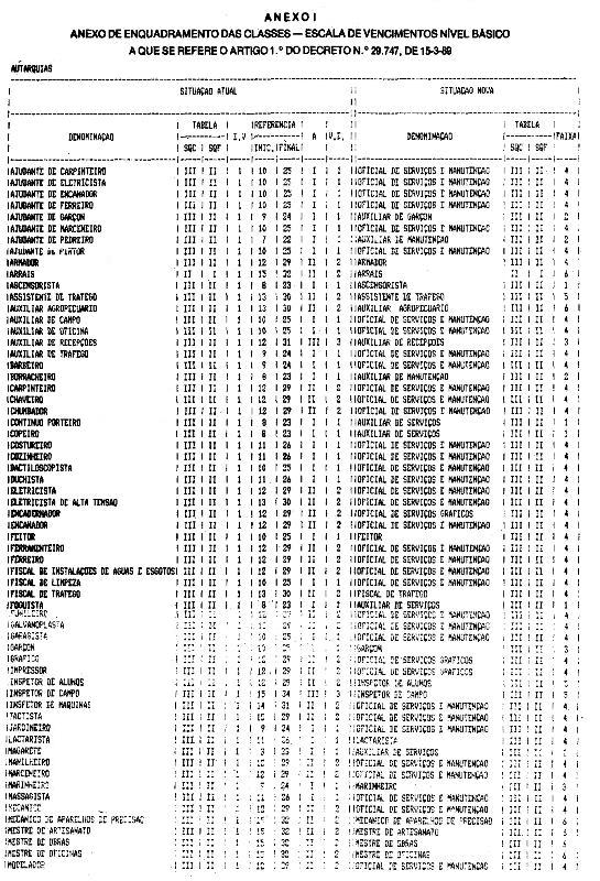 Anexo 1 - Anexo de Enquadramento das Classes - Escala de Vencimentos