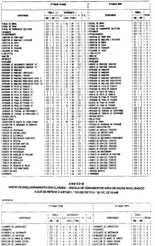 'III - Anexo de Enquadramento das Classes - Escala de Vencimentos