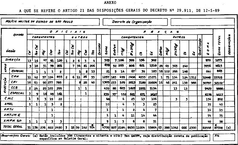 Artigo 21. - O efetivo da Polícia Militar do Estado de São Paulo fica distribuido na conformidade do Quadro Anexo a este decreto.