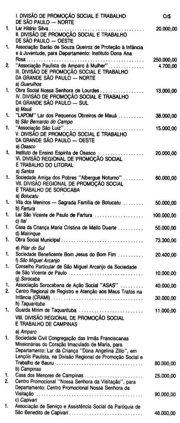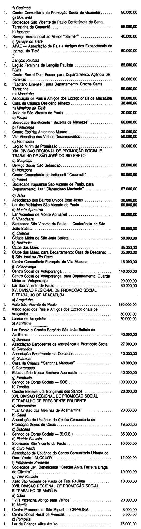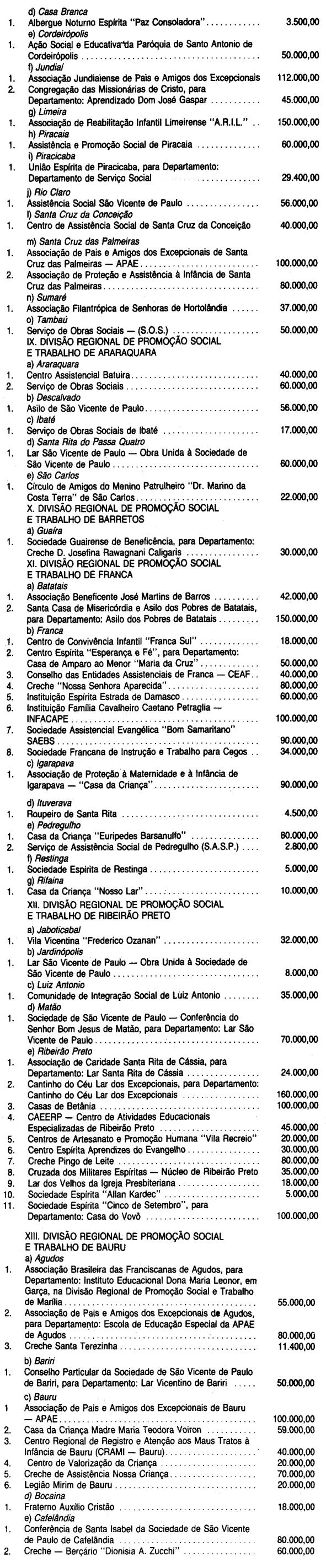 mil e quatrocentos cruzeiros) a 134 instituições assistenciais: