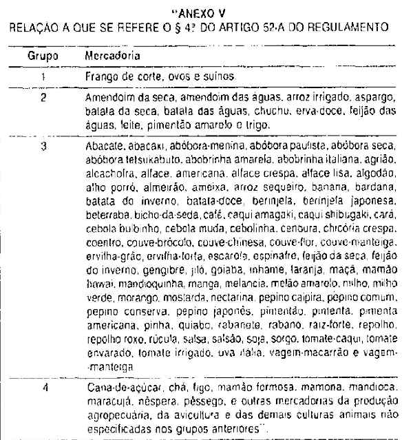 Anexo V, onde se lê: ... Abacate, Abacaxi, ... Alface Americana, ...