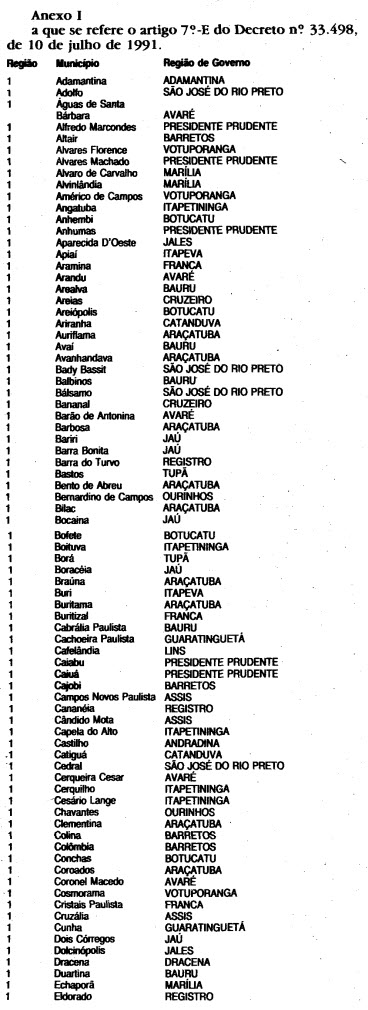 DECRETO N. 33.498, DE 10 DE JULHO DE 1991