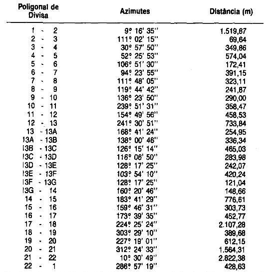 Florestal do ponto "2" ao ponto "13" confronta com