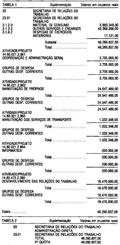 e sete cruzeiros reais), su- plementar ao orçamento da Secretaria de