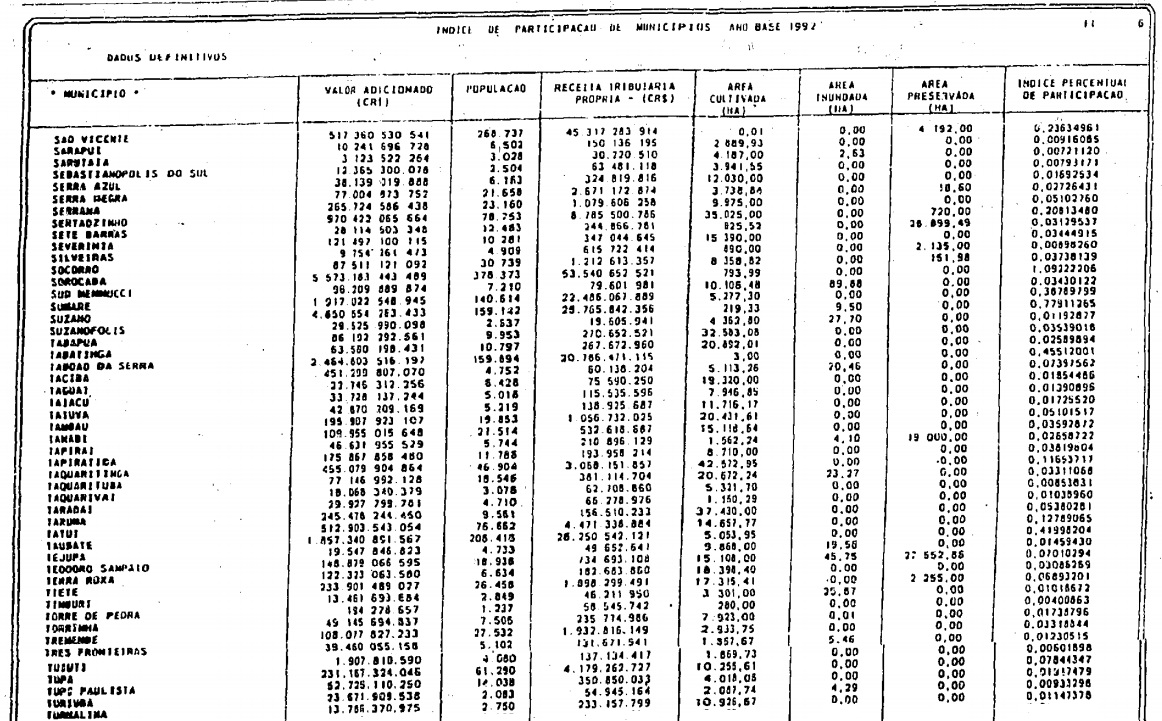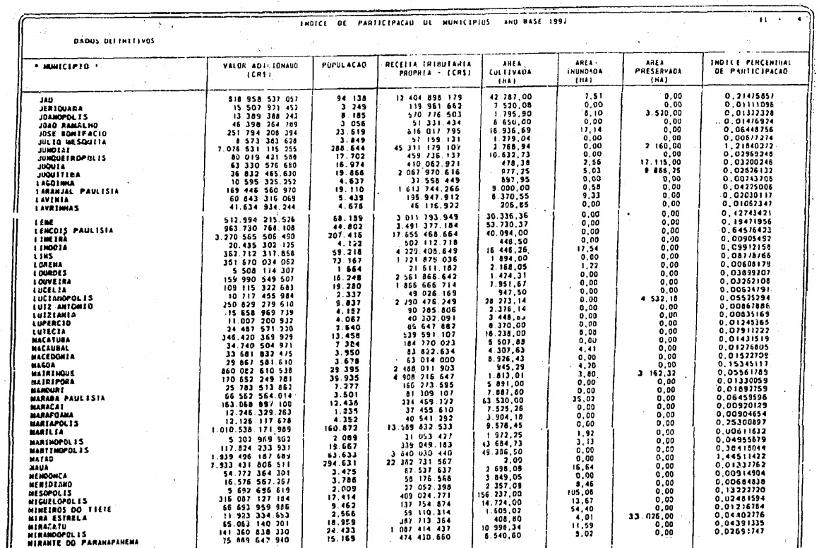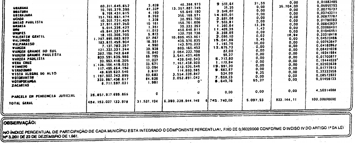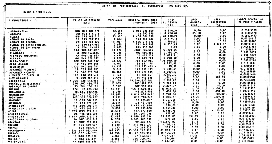 Artigo 1.º - Ficam aprovados os índices constantes da relação anexa, apurados nos termos da Lei n. 3.201, de 23 de dezembro de 1981, alterada pela Lei n. 8.510, de 29 de dezembro de 1993, para a entrega, no exercício de 1994, das parcelas do Imposto sobre Operações Relativas à Circulação de Mercadorias e sobre Prestações de Serviços de Transporte Interestadual e Intermunicipal e de Comunicação - ICMS pertencentes aos municípios paulistas.