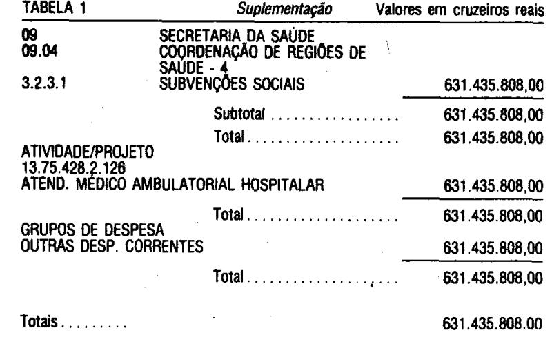 Secretaria da Saúde, visando ao atendimento de Despesas