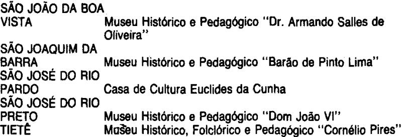 Araraquara; "Afonso e Alfredo de Taunay", em Casa Branca; "D. Pedro