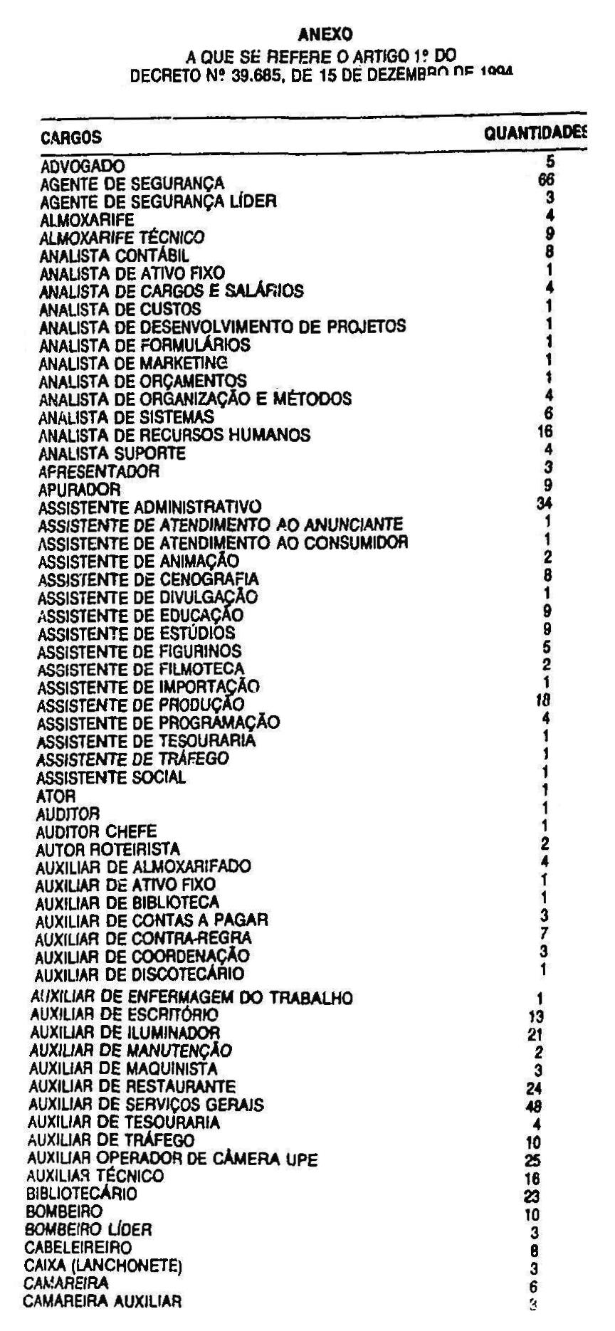 DECRETO N. 39.685, DE 15 DE DEZEMBRO DE 1994