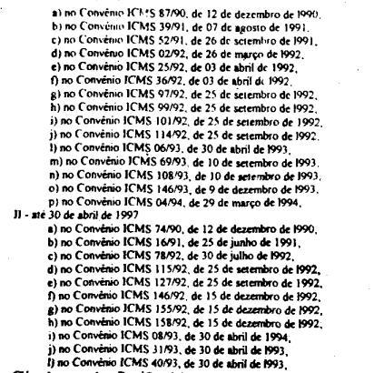do Convênio ICM 95/89 de 24 de outubro de 1989, ficam sujeitos