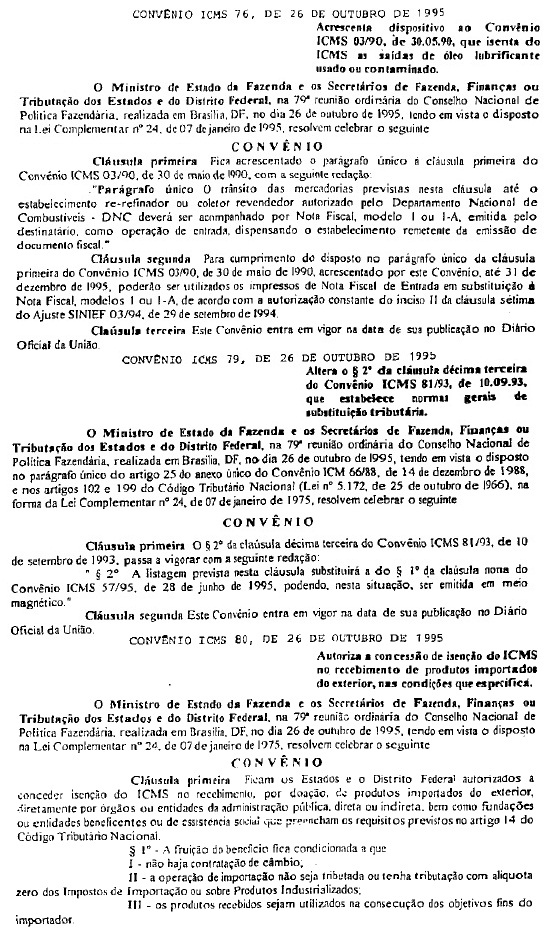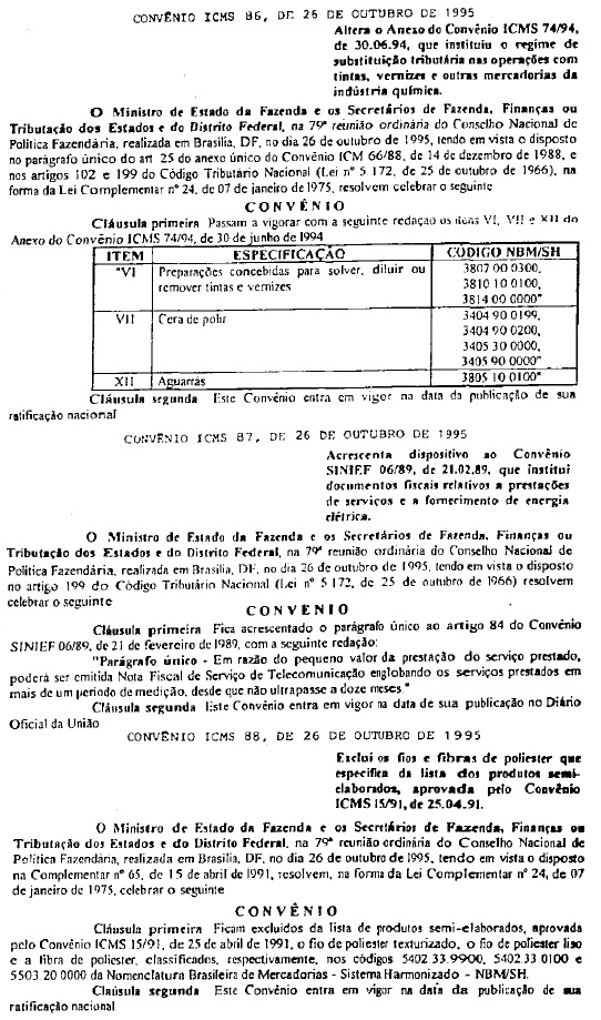 Convênios ICMS-66/95, 67/95, 74/95, 80/95, 82/95, 88/95, 89/95