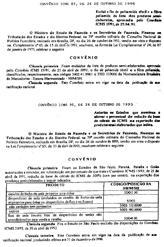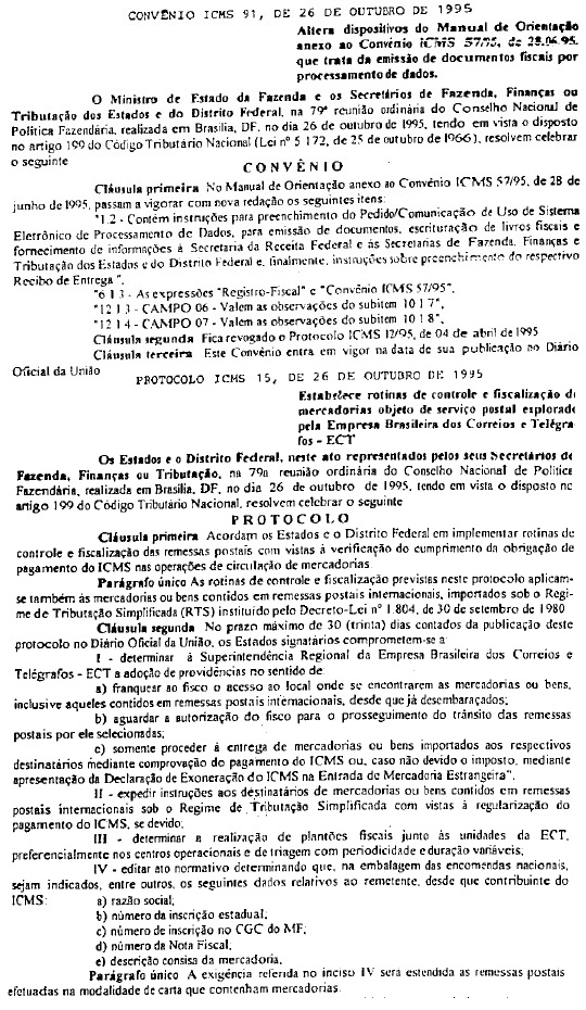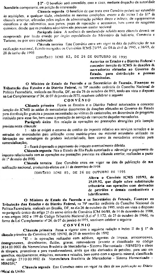 Convênios ICMS-71/95 e 72/95 no Diário Oficial da União