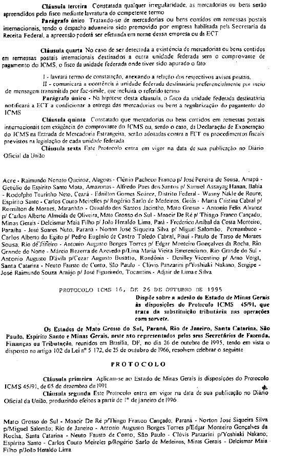 ICMS-16/95 dispõe sobre a adesão do Estado de Minas