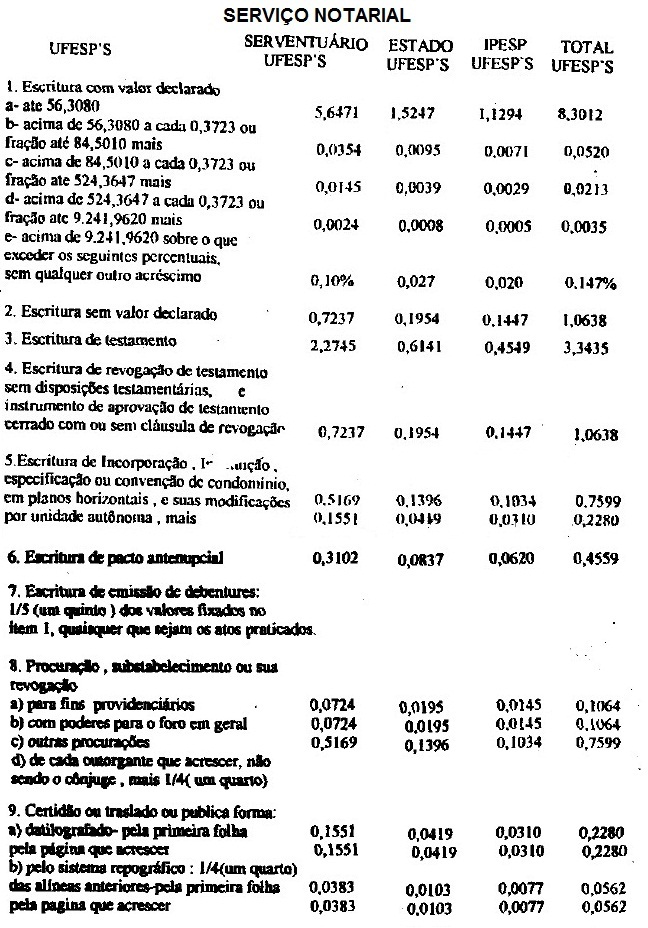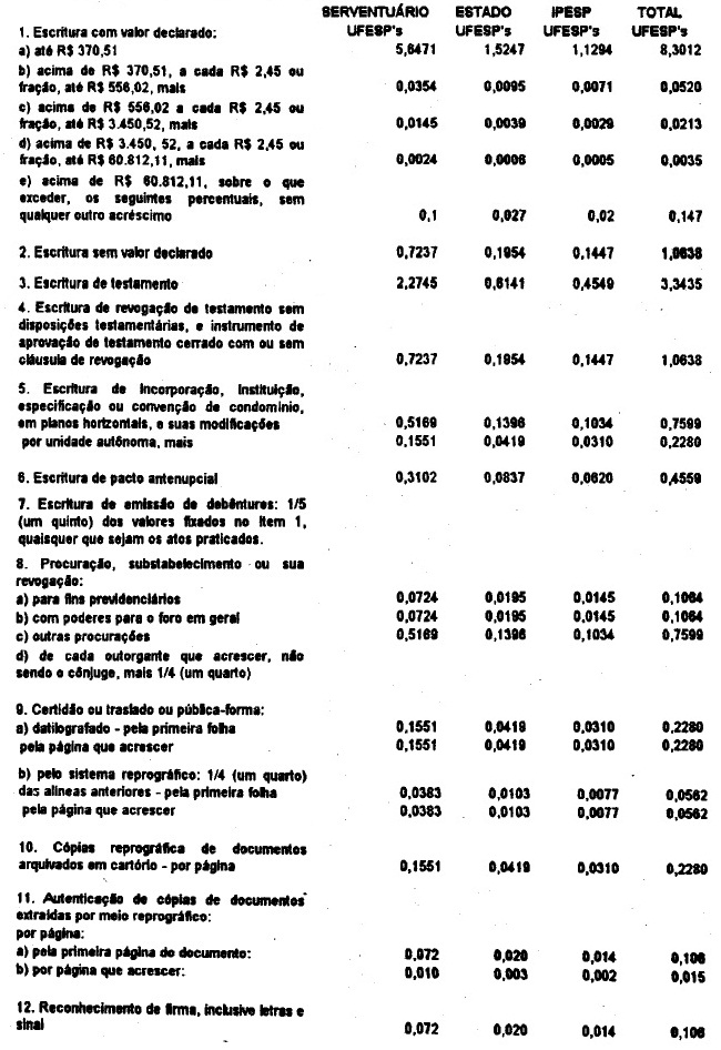 As custas ao Estado, os Emolumentos aos tabeliães e oficiais de