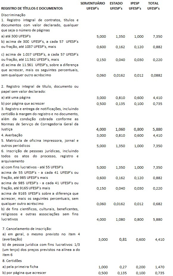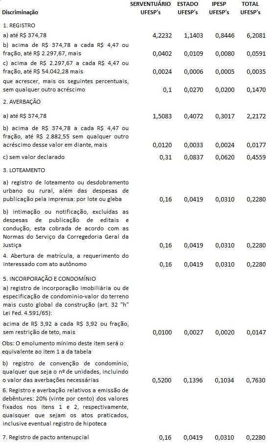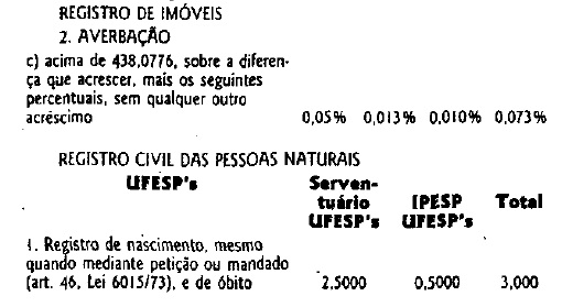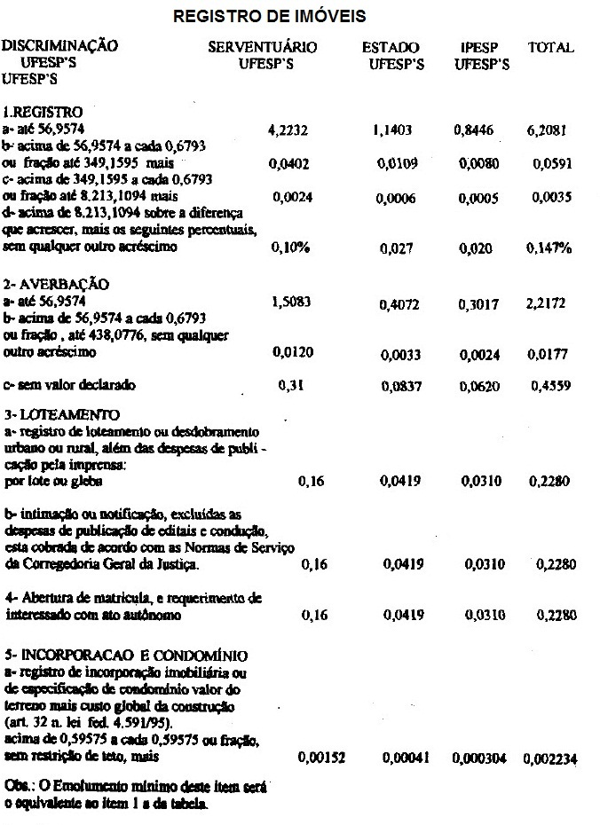 de Registro de Imóveis, sujeitam-se ao pagamento somente
