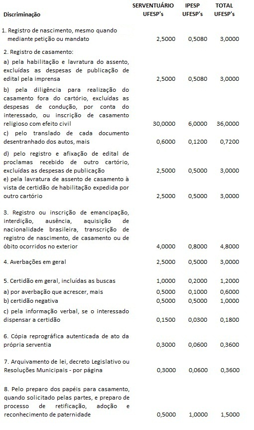 da metade dos emolumentos devidos pelo ato praticado pelo