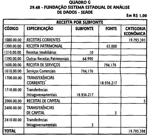de Dados - SEADE, constante do Quadro G - receita por subfonte do