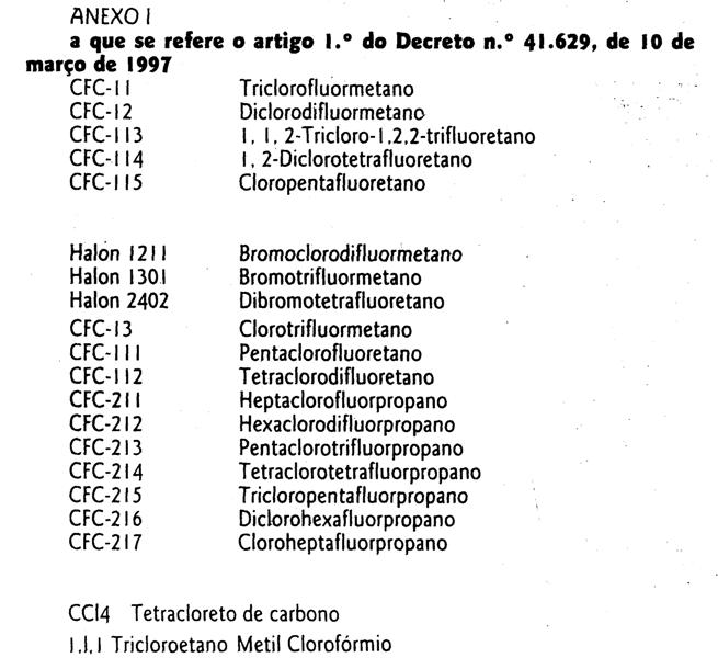 controladas pelo Protocolo de Montreal, promulgado pelo Decreto Federal