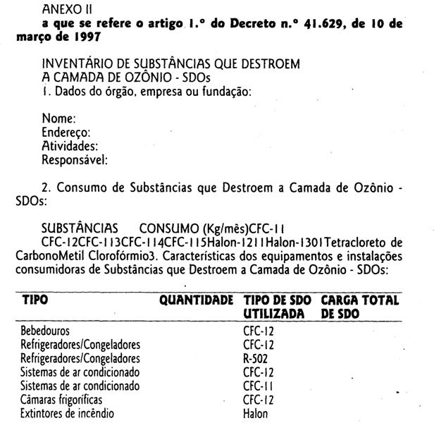 contendo Substâncias que Destroem a Camada de Ozonio - SDOs,